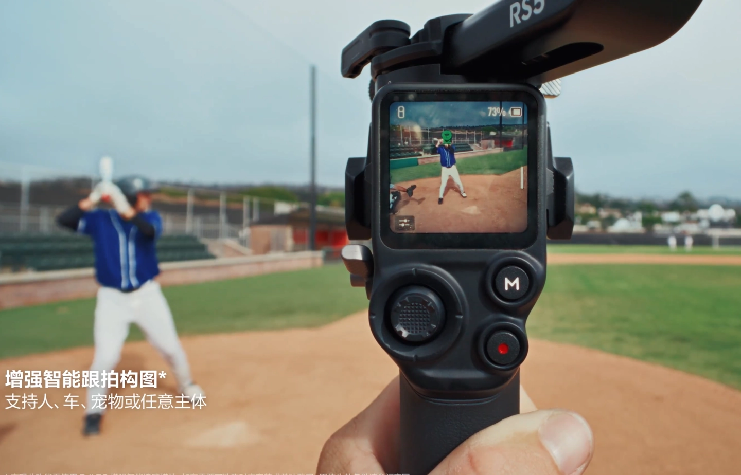 同时,除了手势和扳机操作,全新增强智能追踪模块也支持通过 DJI RS 5 触控屏点选、框选主体启动跟随,配合进行辅助构图;并且,模块可通过磁吸方式,无需额外配件即可快速安装。无论是新手摄影师亦或是经验丰富的摄影师,进行复杂运镜拍摄时都能更加从容,轻松应对环绕运镜、反向跟拍、单人固定机位跟拍等拍摄场景。